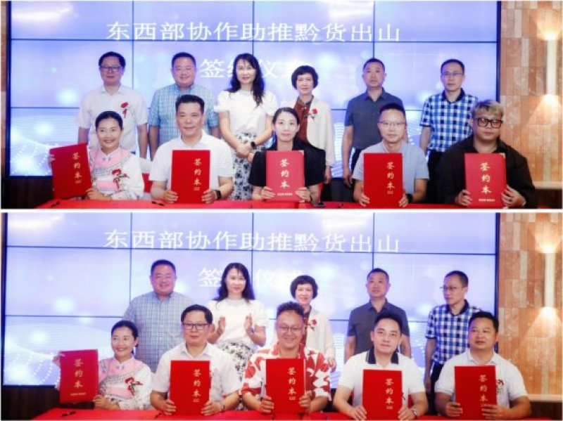 在东西部协作助推黔货出山签约仪式上,播放了关岭自治县的文旅和农产品宣传片,关岭自治县“侨胞之家”负责人、关岭云岭千畦农产品销售有限责任公司赖先红与8家涉侨公司签订了农特产品销售合同120万元。