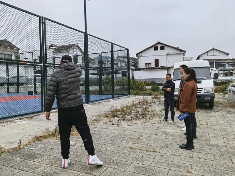 在龙井村篮球场,会员代表实地查看场地现状,详细了解设施使用、维护及村民运动需求,针对场地优化升级、安全保障等问题展开交流,结合自身资源提出合理化改进建议,助力完善乡村公共文体服务配套。