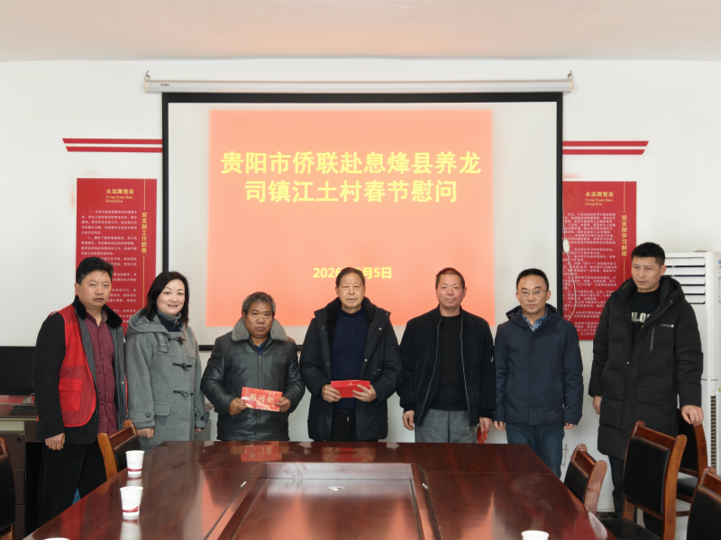 2月5日,市侨联主席王路杨、秘书长高路云率机关党员干部前往乡村振兴联系村息烽县养龙司镇江土村走访慰问老党员和困难群众,在新春佳节来临之际,向老党员和困难群众传递党委、政府和联系帮扶单位的温暖关怀,向他们致以新春的问候和美好的祝福,把侨界真情送到党员群众心坎里。