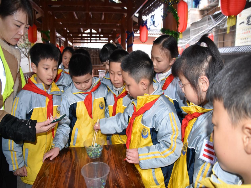 吃过汤圆、看过舞狮,社区在长廊内的另一边场地专门为孩子们准备了弹珠夹夹乐小游戏,游戏吸引了孩子们的青睐,不仅让孩子们锻炼了专注力与手眼协调能力,更在互动协作中增进了友谊。