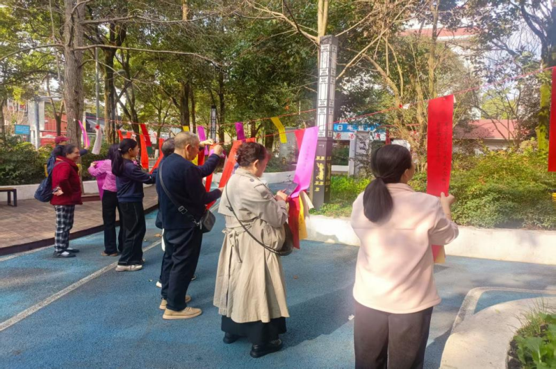 活动现场, 社区工作人员和志愿者们早早地就将准备好的200余条灯谜悬挂在广场上。灯谜内容丰富多彩,涵盖了字谜、成语、生活常识、垃圾分类以及科普宣传等多个方面,既具娱乐性,又具知识性。五颜六色的灯谜纸条随风飘动,将现场装扮得喜气洋洋,充满了浓厚的节日气息。