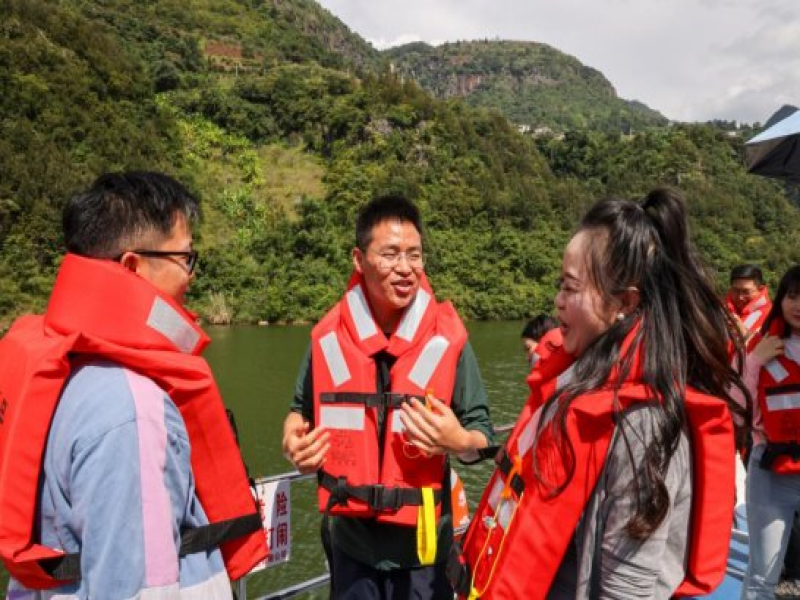 活动当天,10名万粉至百万粉丝量级的网络达人与政企代表、媒体记者一道,乘游船体验北盘江高家渡景区水上项目。达人团队边走边拍,将峡谷风光、航运体验、乡土风情融入短视频创作,实时带#寻美水城##相约高家渡#双话题发布,用生动画面与鲜活文案向网友展现水城区旅游产业高质量发展成果。午后的座谈会上,达人代表张杰、张仕雄等结合创作体验发言,分享传播思路;政企代表围绕“文旅宣传与产业发展”交流探讨,现场氛围热烈。