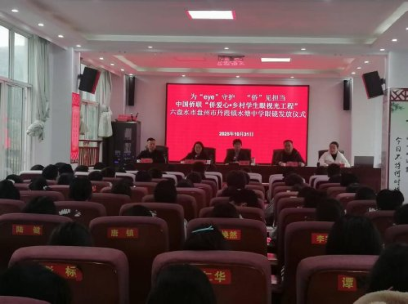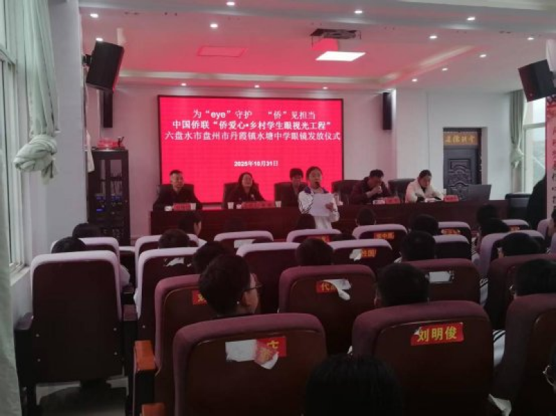 2025年10月31日上午,中国侨联“侨爱心·乡村学生眼视光工程”公益项目捐赠眼镜发放仪式在盘州市丹霞镇水塘中学举行,六盘水市侨联党组成员、副主席陈静及盘州市侨联、丹霞镇人民政府等有关负责人参加。