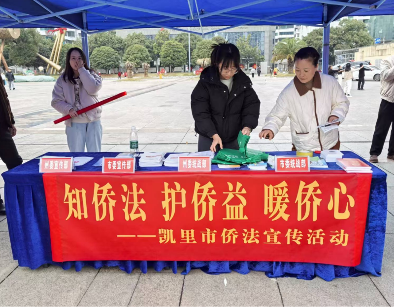 为进一步增强侨界群众法治观念,切实维护归侨侨眷合法权益,凯里市侨联借助苗年节、12·4国家宪法日宣传契机,以“知侨法、护侨益、暖侨心”为主题,组织开展侨法宣传系列活动,通过丰富多样的宣传形式,推动侨法知识深入人心。