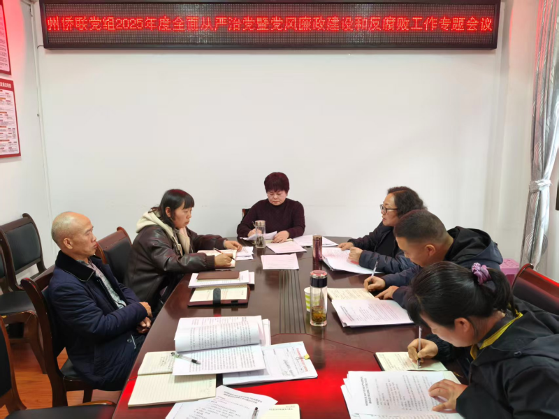 会议听取了黔东南州侨联党组通报州侨联党组2025年贯彻落实全面从严治党暨党风廉政建设和反腐败、基层党建以及意识形态主体责任工作情况,主要负责人履行第一责任人工作情况,班子成员履行“一岗双责”工作情况。