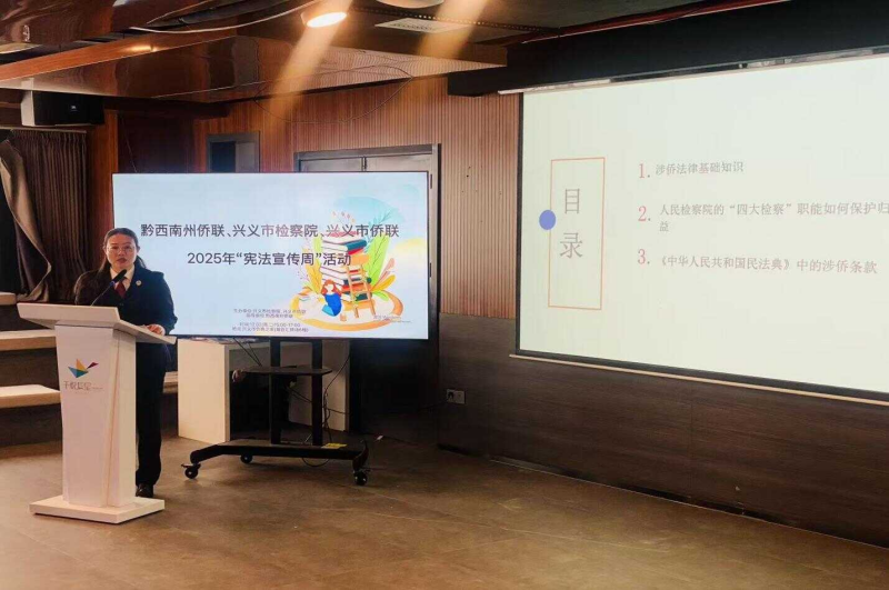 为持续深化检侨合作,依法保障归侨侨眷、侨企和海外侨胞合法权益,2025年12月2日下午,兴义市人民检察院联合兴义市侨联到兴义市“侨胞之家”开展“学全会精神·守宪法底线·护侨界权益”涉侨法律知识专题讲座,州、市两级侨联有关领导、侨企负责人、归侨侨眷等40余人参加活动。