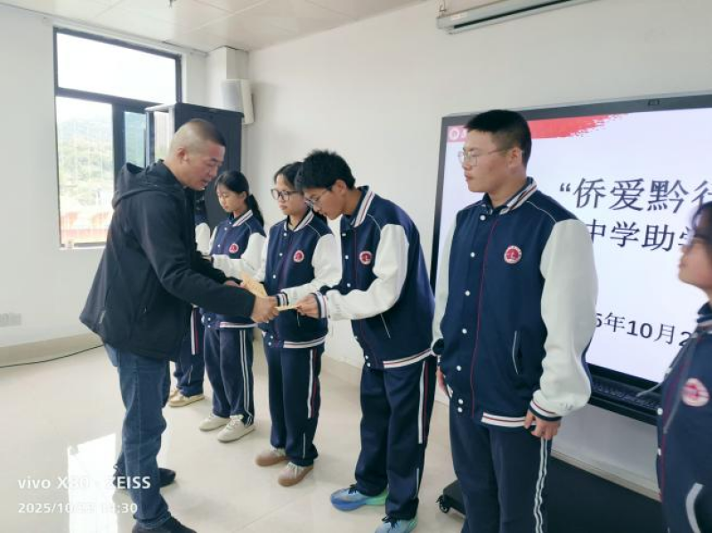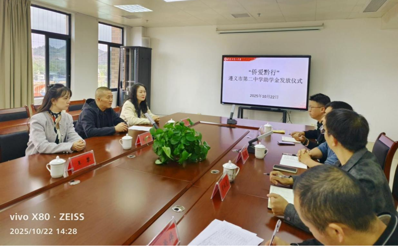 10月22日,遵义市第二中学“侨爱黔行”助学金发放仪式在学校启明楼会议室举行。市、区侨联相关负责人、第二中学副校长金玉军参加本次发放仪式。