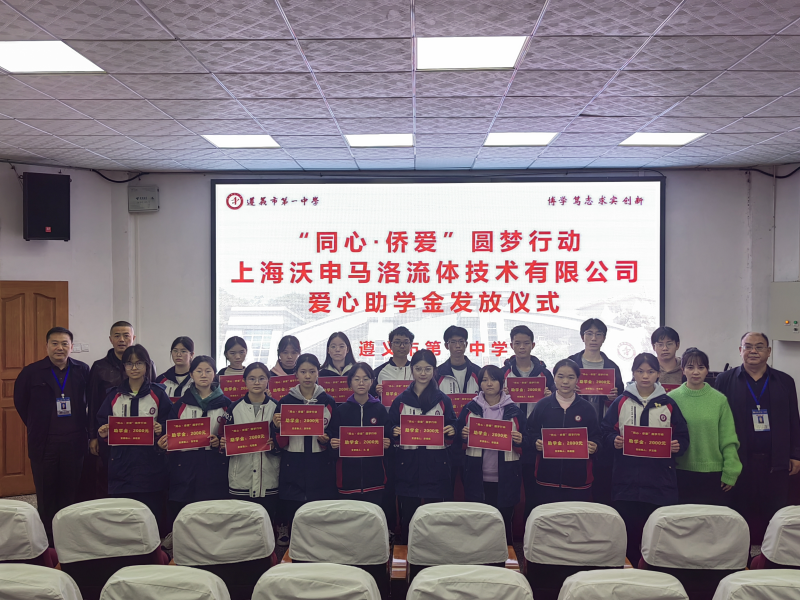 为让困难学生能够不因家庭困难导致学业受影响,深切感受学校及社会各界爱心人士的关爱,2025年10月29日在遵义一中源汇楼三楼道德讲堂开展了上海沃申马洛流体技术有限公司的爱心资助金发放活动,将关怀与祝福送给高三年级的20位受助学生。遵义市侨联,红花岗区侨联,第一中学党委副书记、校长穆浩勋,副校长熊进等出席发放仪式。