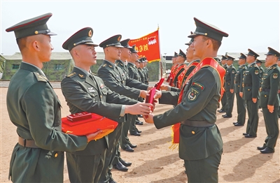 9月15日,“刘老庄连”举行“新时代刘老庄八十二勇士”颁授仪式,连队干部为新当选的勇士颁发证书。 |