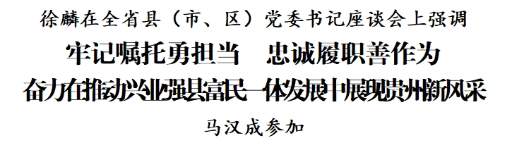 10月11日,省委书记徐麟主持召开全省县(市、区)党委书记座谈会。他强调,要深入学习贯彻习近平总书记关于县域发展的重要指示和怎样当好县委书记的重要要求,认真落实总书记在贵州考察时的重要讲话精神,牢记嘱托勇担当,忠诚履职善作为,奋力在推动兴业强县富民一体发展中展现贵州新风采。省委副书记马汉成,省领导卢雍政、胡忠雄、郭强、李睿、郭锡文、李建、石化清、孙发参加。